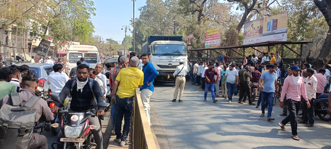 वाहतूक कोंडीमुळे डंपर मोटरसायकल अपघात