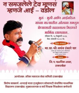 आजच्या धकाधकीच्या जीवनात मुलांना आई–वडिलांच्या कष्टांची जाणीव करून देणे ही काळाची गरज बनली आहे. याच उद्देशाने सुप्रसिद्ध व्याख्याते, समाजप्रबोधनकार तथा आनंदी जीवनाचे साधक *मा. प्रा. श्री. वसंत हंकारे सर* यांच्या मार्गदर्शनाखाली *“न समजलेले देव माणसं म्हणजे आई–वडील”* या विषयावर विशेष प्रेरणादायी व्याख्यानाचे आयोजन करण्यात आले आहे.