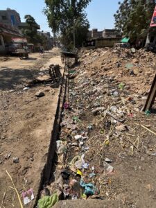 अमळनेर-पारोळा या वर्दळीच्या रस्त्यावरील मुख्य मोठी गटार पूर्णपणे सांडपाणी, गाळ आणि प्लास्टिक कचऱ्याने भरलेली आहे. गटारीच्या काठावरील दाट काटेरी झाडे- झुडपे झुकली आहेत. तेथील उकिरड्यावर मेलेली कुत्रे, मांजरी देखील पडलेली पाहावयास मिळाली. यामुळे तेथे अतिशय तीव्र दुर्गंधी होती. उघड्या गटारीत गाळयुक्त काळपट पाणी साचल्याने डासांचा मोठ्या प्रमाणात प्रादुर्भाव आहे. पावसाळ्यात ही परिस्थिती अधिक गंभीर बनत असल्याचे तेथील रहिवाशांनी सांगितले. नियमित साफसफाई व दुरुस्ती होत नसल्याने तेथील नागरिकांना साथीच्या रोगांना सामोरे जावे लागते.