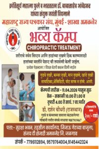 अमळनेर : क्रांतिसूर्य महात्मा फुले व भारतरत्न डॉ. बाबासाहेब आंबेडकर यांच्या संयुक्त जयंतीनिमित्त महाराष्ट्र राज्य पत्रकार संघ, मुंबई (शाखा अमळनेर) यांच्या वतीने भव्य कायरोप्रॅक्टिक ट्रीटमेंट कॅम्पचे आयोजन करण्यात आले आहे.